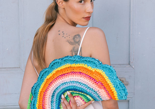 Ses sacs et pochettes crochetés à la main sont de véritables pièces d’artisanat : des créations qui racontent un voyage, héritées de broderies ancestrales et réinterprétées dans des lignes modernes et intemporelles.